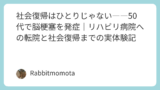 仕事に復帰できるのかという不安、友人との会話で感じる距離感。「社会から離れてしまったのではないか」と感じたこともあります。それでも、リハビリの先生が言ってくれた「焦らず“できること探し”をしましょう」という言葉に励まされました。